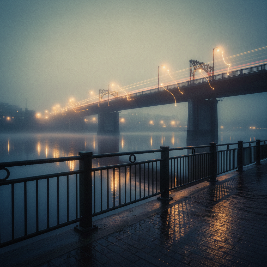 River Fog Over Bridge Lights